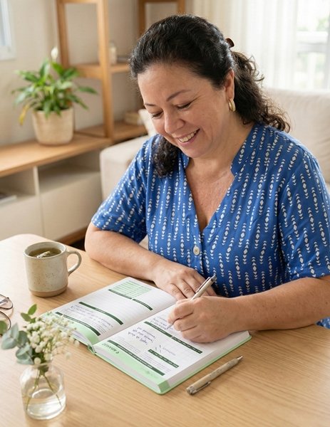 Cada mês e cada semana trazem reflexões, espaços de planejamento e autoavaliação que conectam alimentação, emoções, rotina, sono, movimento, relações e espiritualidade, para que você avance no seu ritmo, sem extremismos.