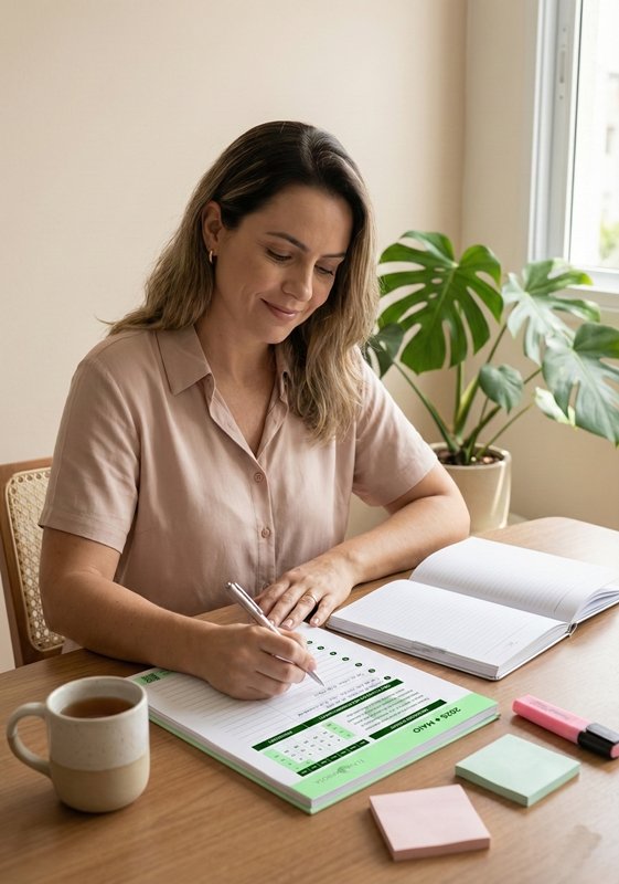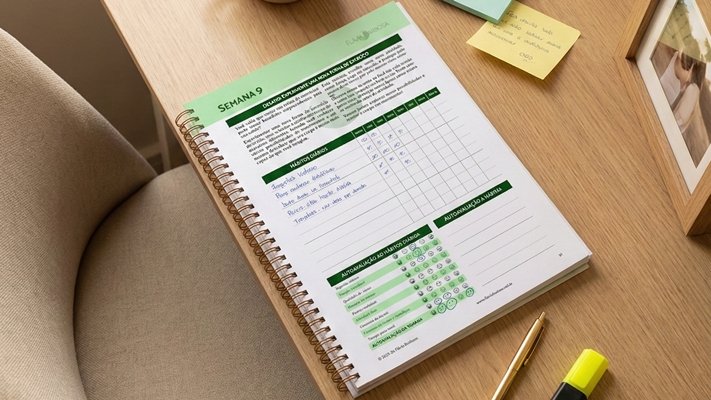 A proposta não é cumprir tudo perfeitamente, sem nenhuma falha, mas ter um guia que acompanha sua realidade, permitindo ajustar metas, recomeçar sem culpa e aprender com cada semana.